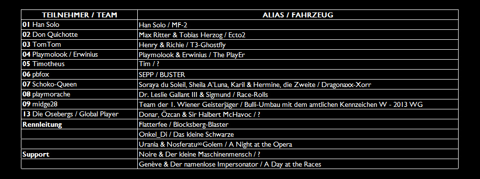 Ja, das seh ich ein, dann fallen die "No Ghost" Logos, die Dachaufbauten und die diversen Blaulichter wirklich kaum noch aufDon Quichotte hat geschrieben:Indem ich die Heckklappe schließe und keinen die Startnummer sehen lasse. Ansonsten ist da noch die Dead Duck auf dem Armaturenbrett, die die Blicke auf sich ziehen wird.