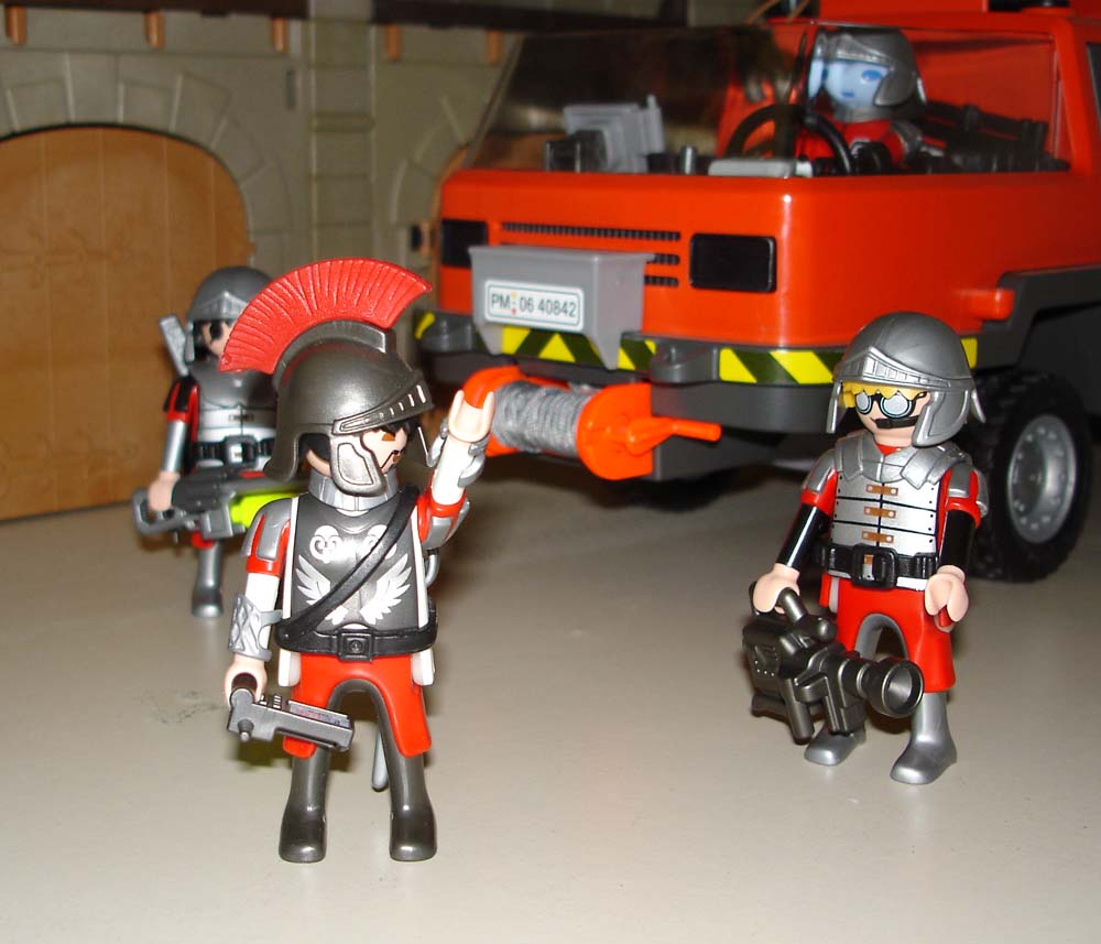 Zenturio Cho ist sehr zufrieden: „Der Auftrag ist erledigt. Männer, ihr habt alle hervorragende Arbeit geleistet. Alles verstauen und aufsitzen wir fahren zurück zum Campingplatz.“