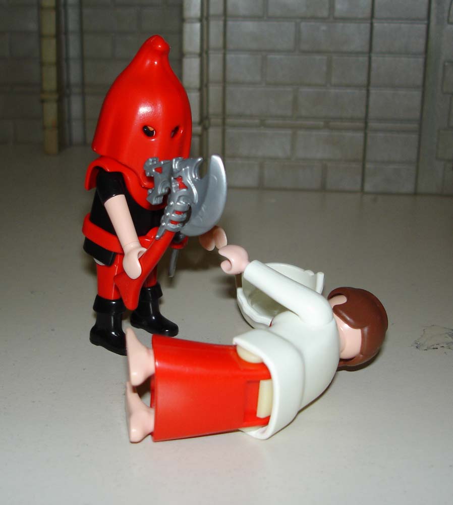 Der junge unerfahrene Henker vollendet sein grausiges Werk. Der Körper von Margaret Pole bleibt geschunden und zerstückelt liegen. Kein Tropfen Blut war zusehen.