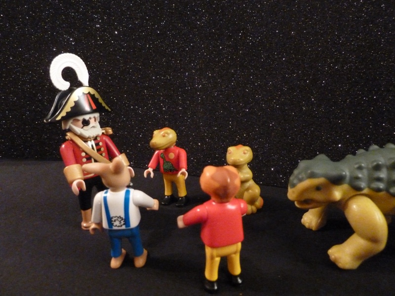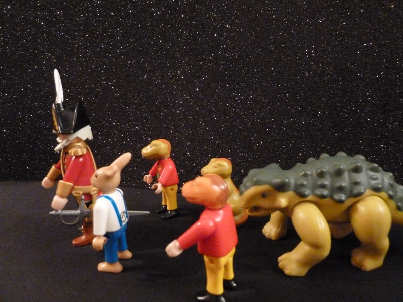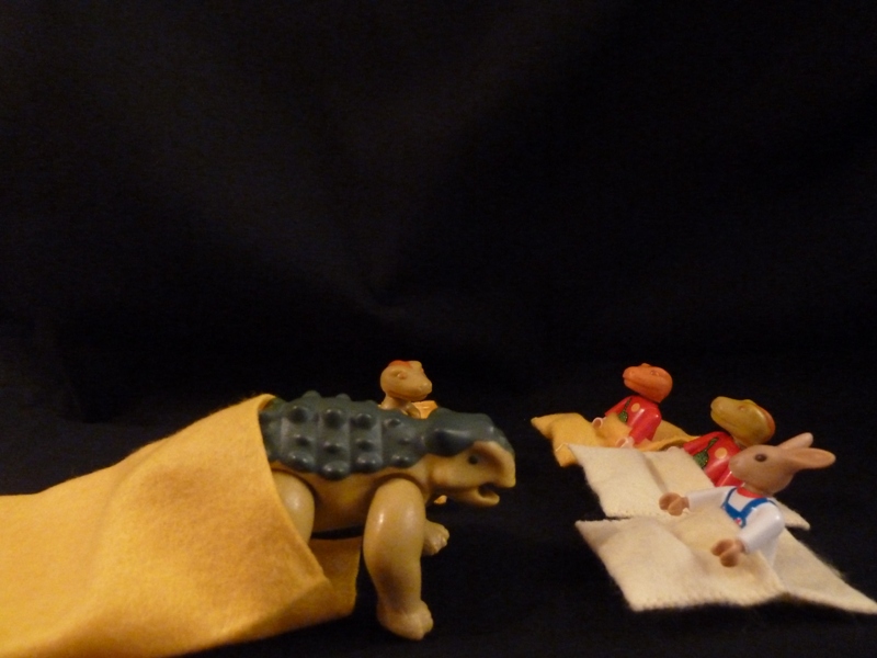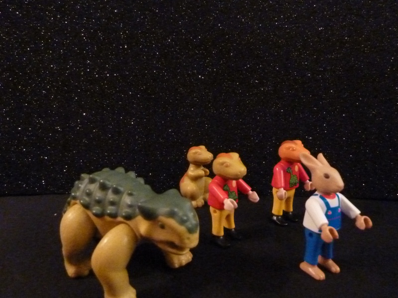 Die Dinos und Möhrchen gehorchten und liefen weg.