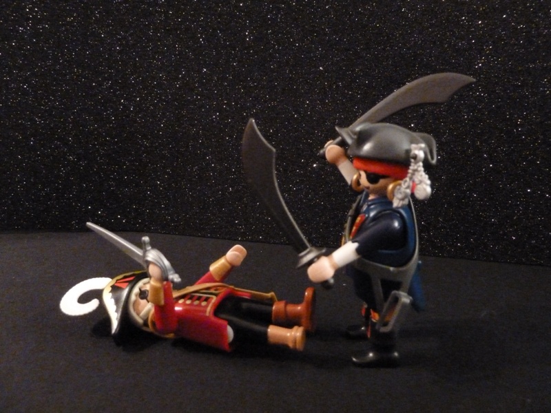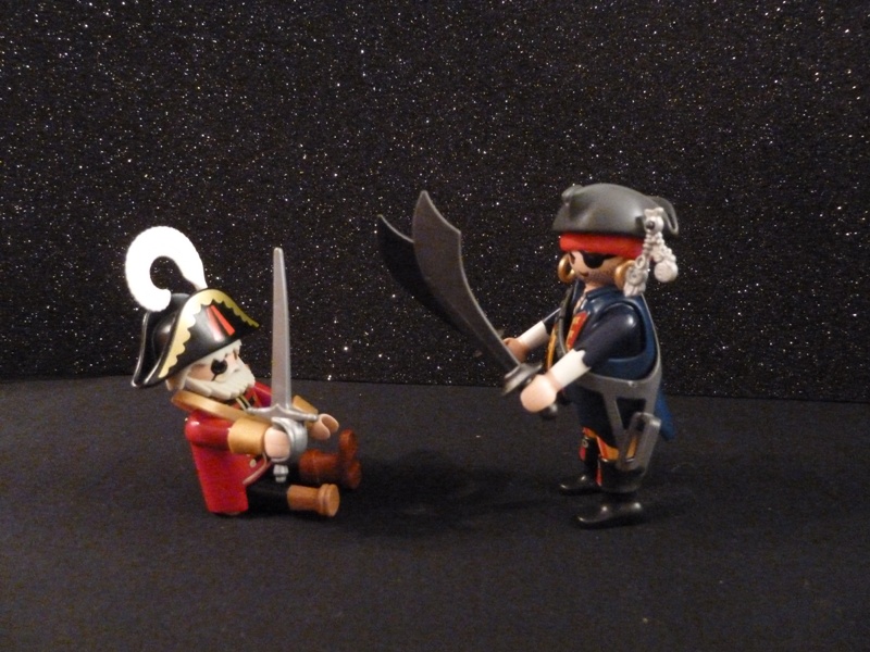 Der Pirat holte aus und wollte zuschlagen.