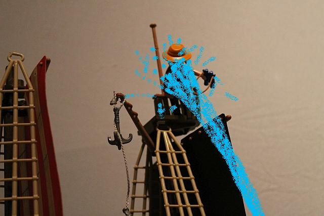 Es geht zu wie an der Schießbude. Martin befördert einen Piraten nach dem anderen ins Wasser.