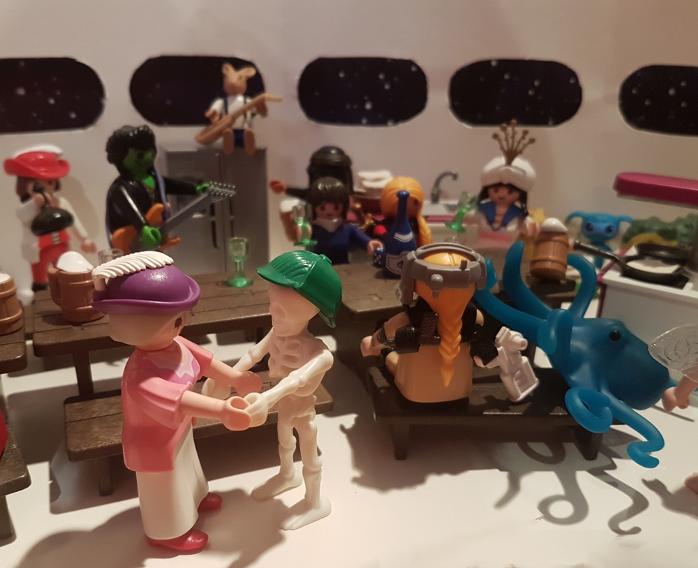 Während wir noch beratschlagen, was nun zu tun sei, hören wir einen seltsamen Gesang: "Tralali und tralala, wir lieben Party/i, heißa, hopsassa!"