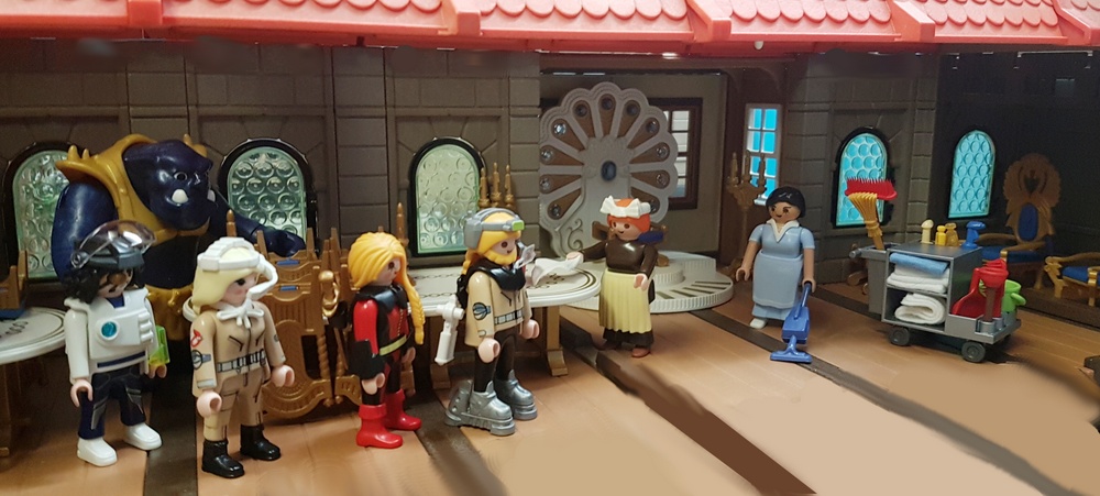 Allerdings sind die Einzigen, die wir antreffen, zwei putzende Dienstmädchen.