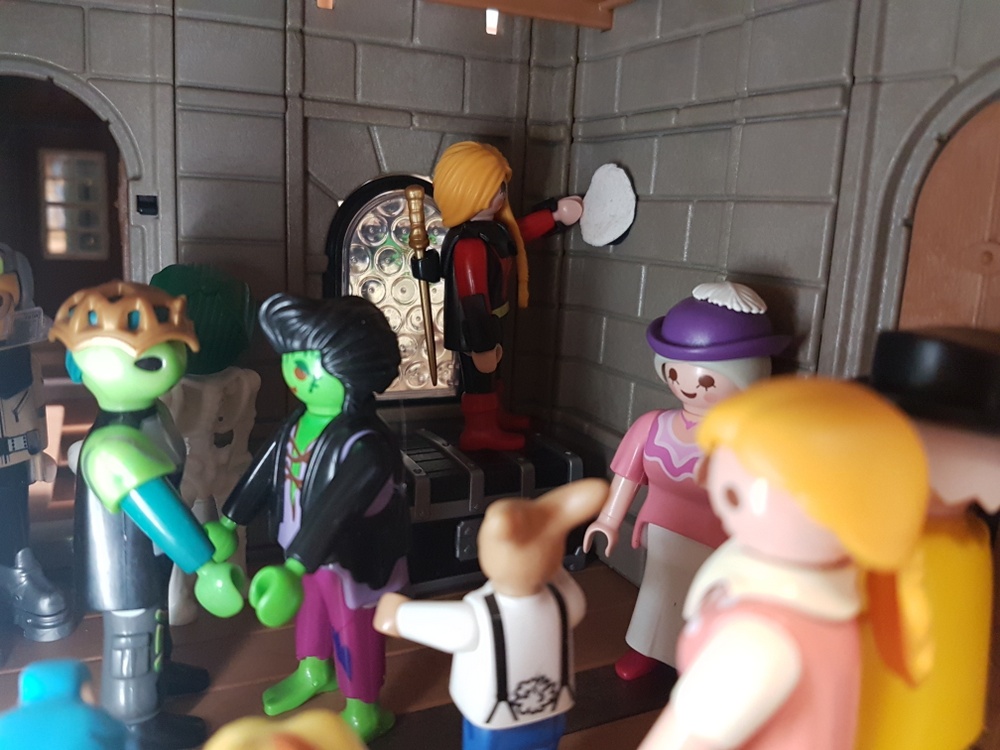 Am späten Vormittag stehen wir also im Thronsaal des Königsschlosses und versuchen, Königin Parti Tralitrala vor der Gefahr zu warnen.
