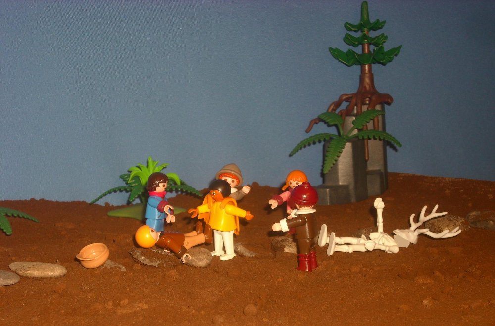 Mimi meint etwas trübsinnig: „Der Antler und ich hatten weit weniger Glück: Ein Dillo goß ihm das heiße Blei über den Handrücken. Jetzt habe ich überall Brandblasen, weil ich ihm half, das Blei wieder loszuwerden, indem ich es mit den Fingern herauspulte.“