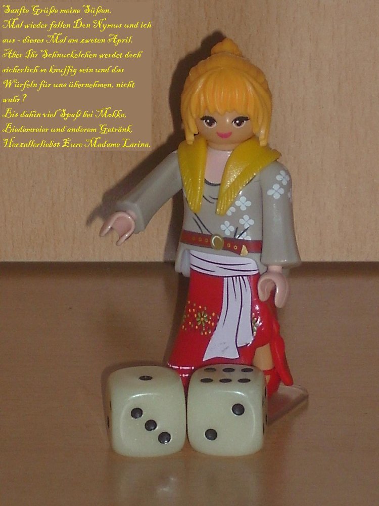 „Vorsicht, mein Lieber!“ bremst ihn Madame Larina „Auch der Gevatter Tod kann nicht in die Zukunft schauen. Wir werden wohl nächsten Mal bei den letzten Erinnerungen erleben ob ihre Heimkehr zu einer Wiedervereinigung oder etwas anderem führt.“