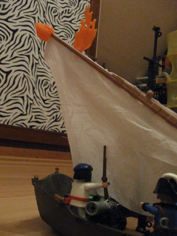 "Und der Franzose hatte den Bogen. Er nahm einen brennenden Pfeil und schoss ihn auf unser Segel! Das fing natürlich sofort Feuer..."