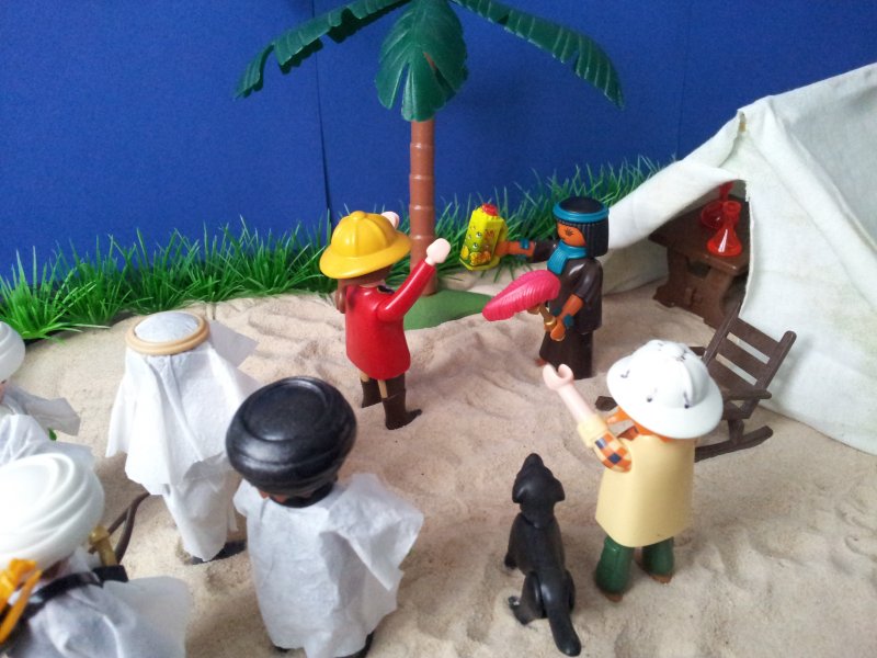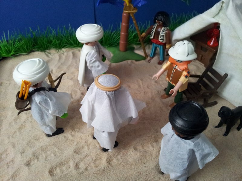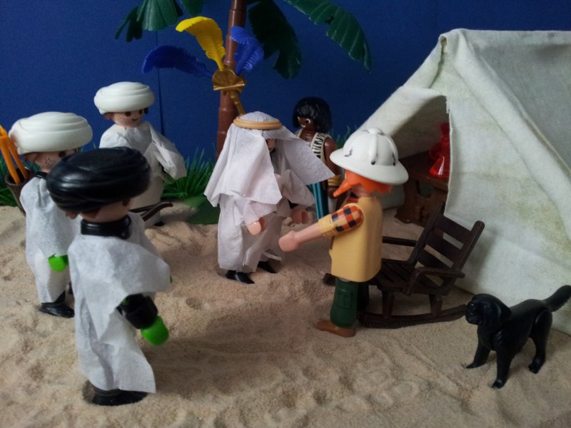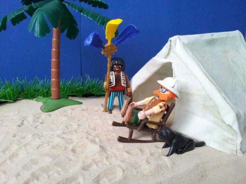 Der Earl vor seinem Zelt, heute ist Ruhetag im Lager, und nur sein treuer Klimafächler Pafmi (Persönlicher AFrikanischer MItarbeiter..... :wink ) und sein Terrier Whisky leisten im Gesellschaft.
