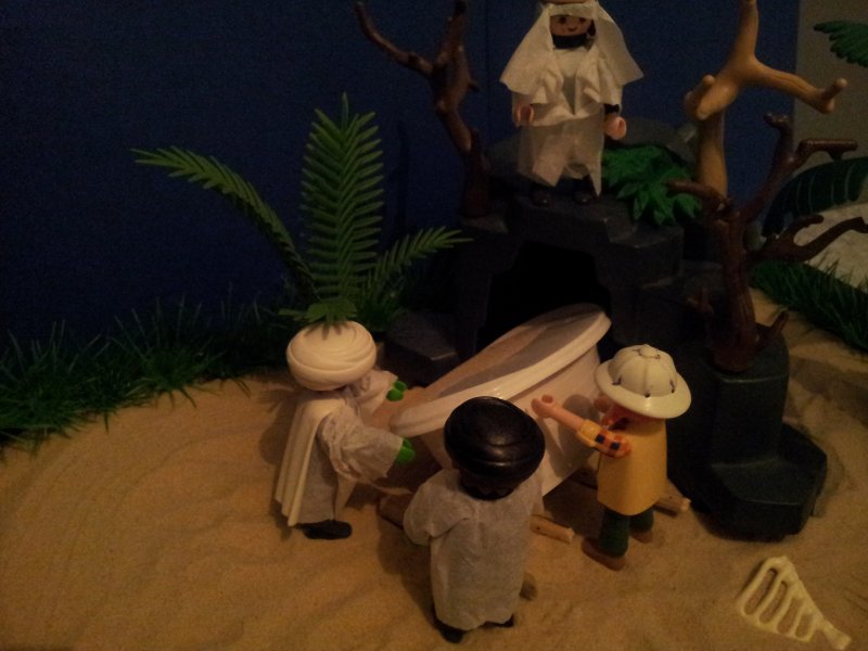 "Ihr seid Zeitreisende?????? Ja klar....... :pfeif :roll Dann habt ihr bestimmt auch Zeit, mit zu helfen? Ich habe einen noch unberührten Sarkophag in einer versteckten Grabkammer entdeckt. "