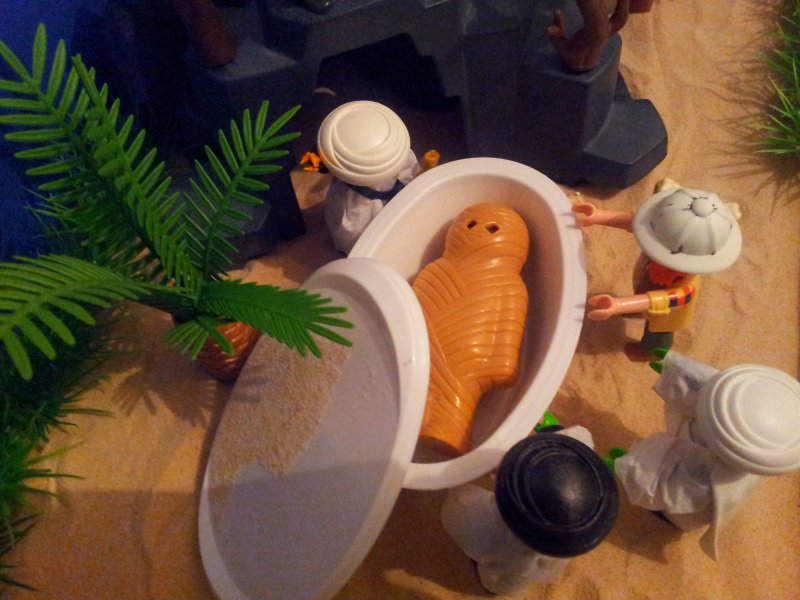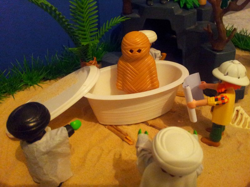 Was liegt denn da bei dieser Mumie? Ein Papyrus.... vielleicht eine Gebrauchsanleitung à la: "Kühl und trocken Lagern und vor Licht schützen " ? :gruebel
