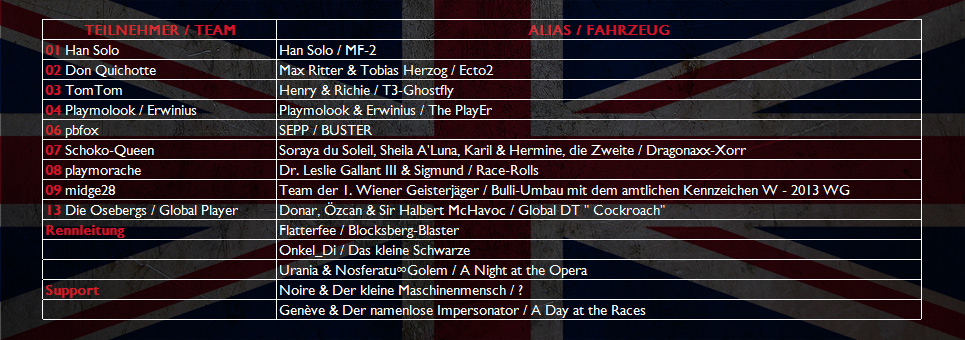 - Tabelle: Teilnehmer- und Teamliste.