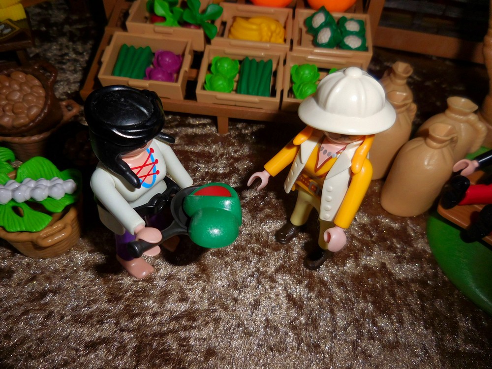 Ah! Die Händlerin scheint zu verstehen. Sie nickt heftig.