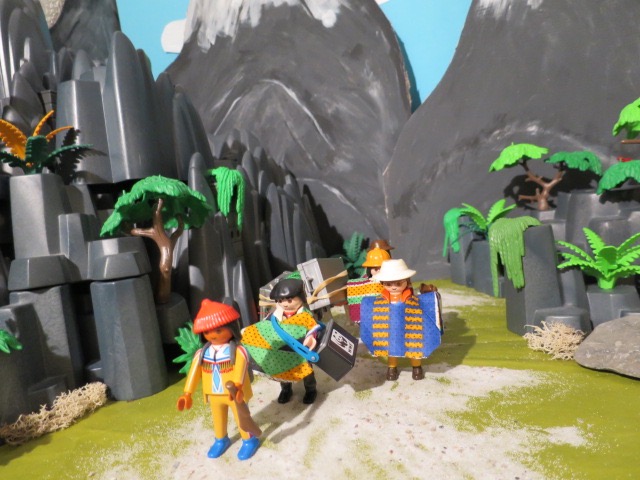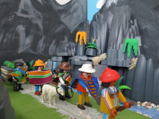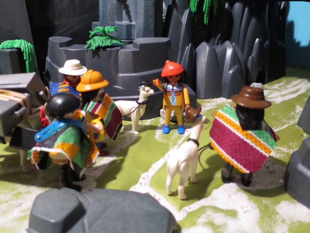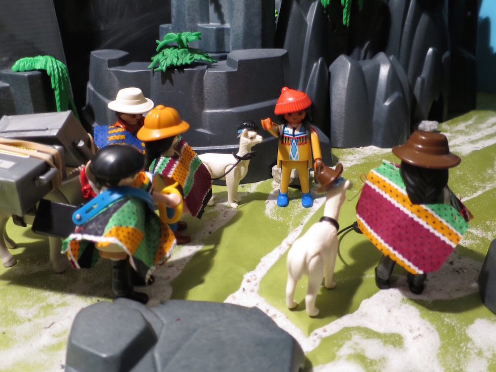 Da wir jetzt ziemlich weit oben ins Hochgebirge aufstiegen, wurde es dementsprechend auch immer kälter. Gott sei Dank hatten wir uns bei den strickenden Männern vom Volk der Quechua mit Ponchos eingedeckt. Sie liessen uns viel Bewegungsfreiheit beim Wandern und hielten gut warm. Pedro brauchte natürlich keinen. Er war an das Klima gewöhnt.