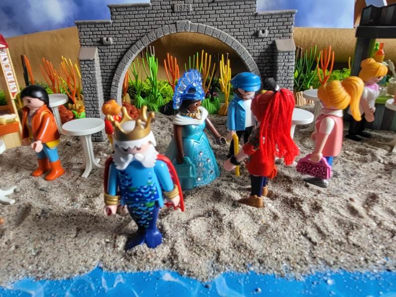 Schoko grinst und meint: „Frau kann nie wissen!“ Meerkönig ist zwar durch das Tor gekommen, aber nun möchte er so schnell wie möglich wieder ins Meer.