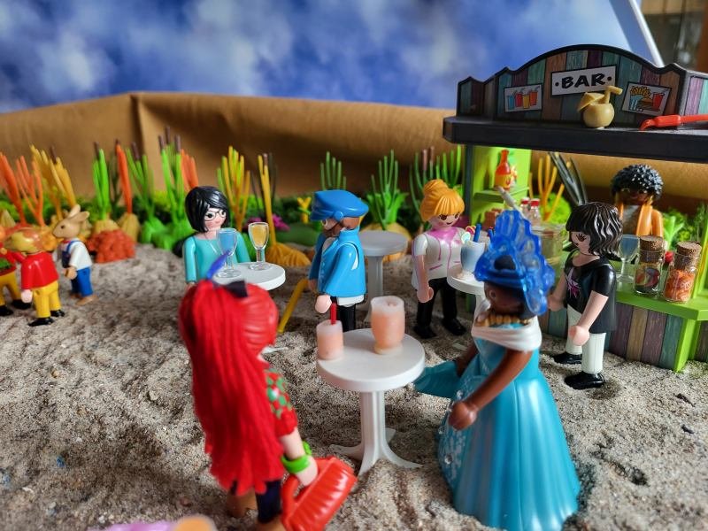 „Du hast recht!“ Schon kommen die nächsten Gäste: Meerkönig, der Schoko-Queen galant an der Hand führt und Fischkopp Claas. Don Snüff und Hyäni vergnügen sich miteinander, während sich die anderen Getränke holen.