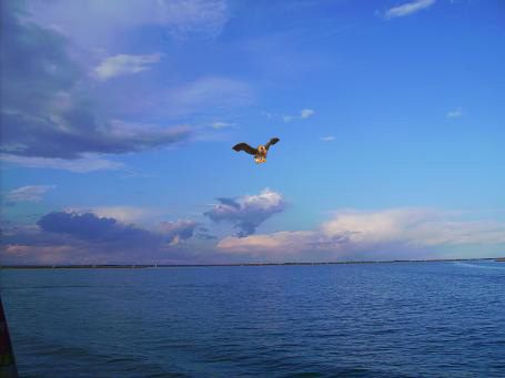 CS: "Irgendwie scheint mir der Vogel völlig auf unsere Fahne fixiert zu sein. Er folgt jeder Kursänderung des Schiffes und hält immer genauen Kurs auf die Fahne am Heck."