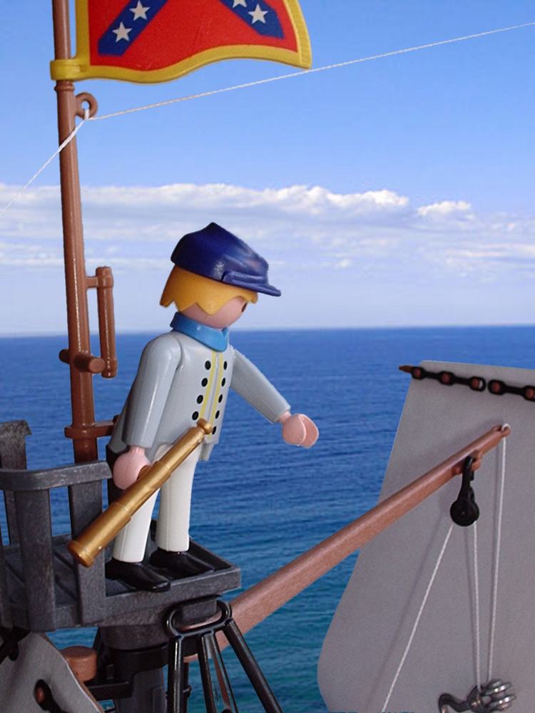 CK: "Sieht mir eher nach einer Nachrichtenkapsel aus, wie sie Brieftauben verwenden. Holen wir das Tier an Bord um es zu untersuchen, bevor wir es auf die «Alabama» bringen."