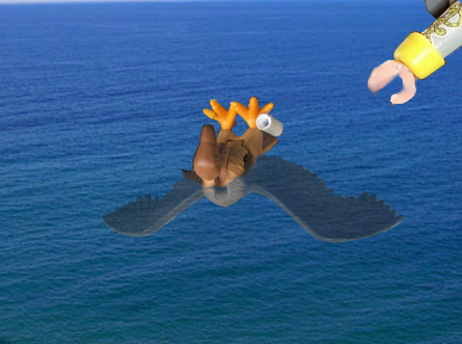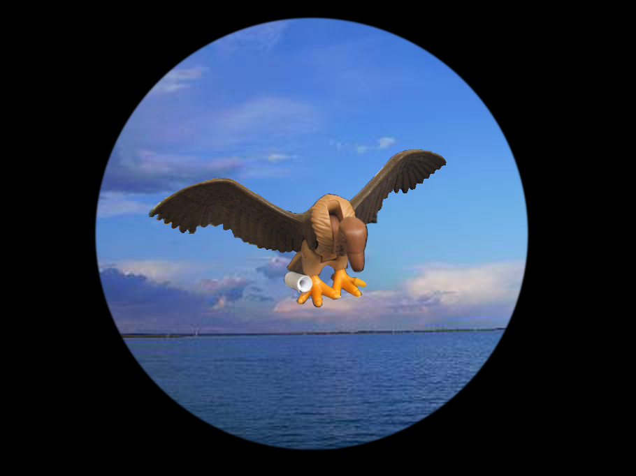 CS: "Was können wir tun, Sir? Nicht auszudenken, wenn dieser Vogel tatsächlich auf unsere Fahne programmiert worden ist. Ein Vogel dieser Größe könnte genügend Sprengstoff transportieren, um unser halbes Heck zu pulverisieren!"