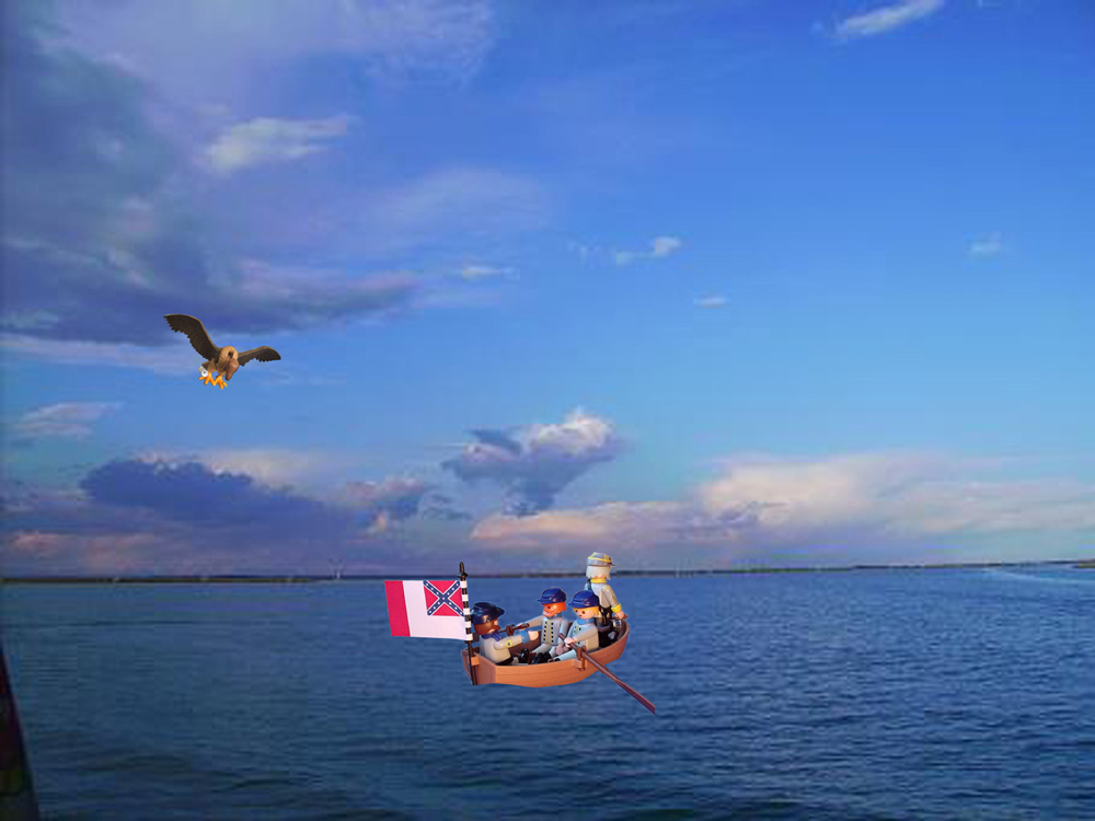 QJ: "Es funktioniert, Sir! Der Vogel läßt von der «Alabama» ab und folgt uns und der Fahne...!"