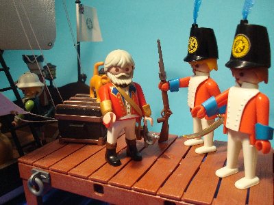 Er wird in der Hafenkomandatur von Major Redclick empfangen.