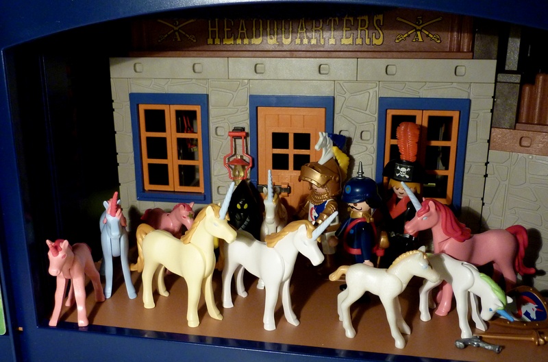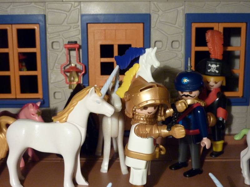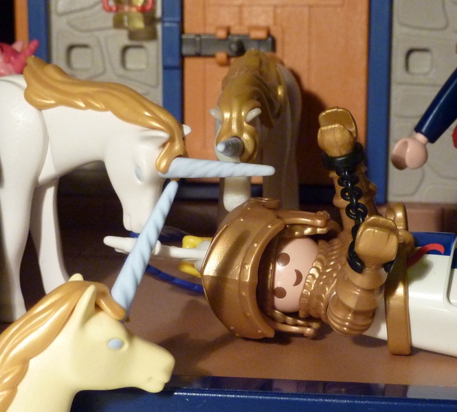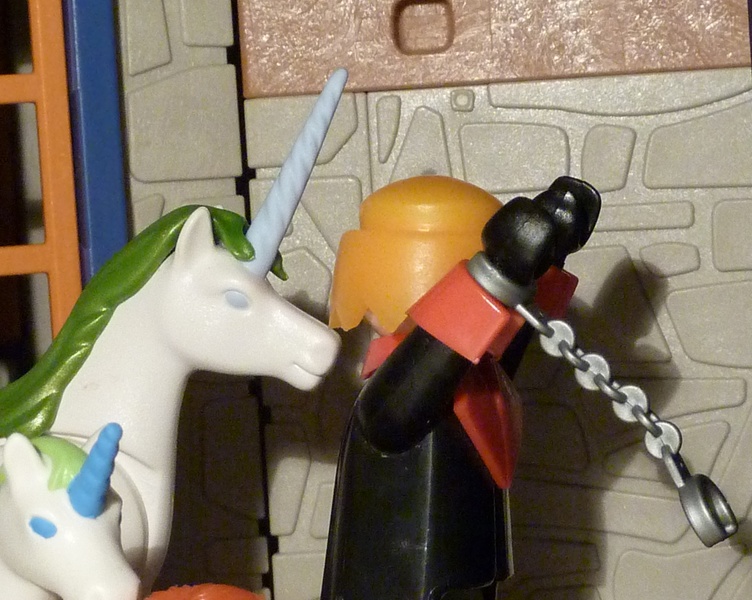 - Wachtmeister:"Das haben wir gerne, Nachts randalieren und das letzte Einhorn vertreiben! Dafür gehen die Herren mindestens für eine Runde in den Knast!"