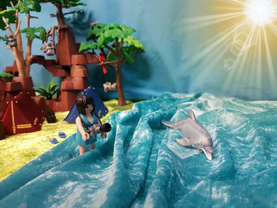 Dann teste ich das Meer. Es ist angenehm warm. Und dieser Delfin ist überhaupt nicht scheu.
