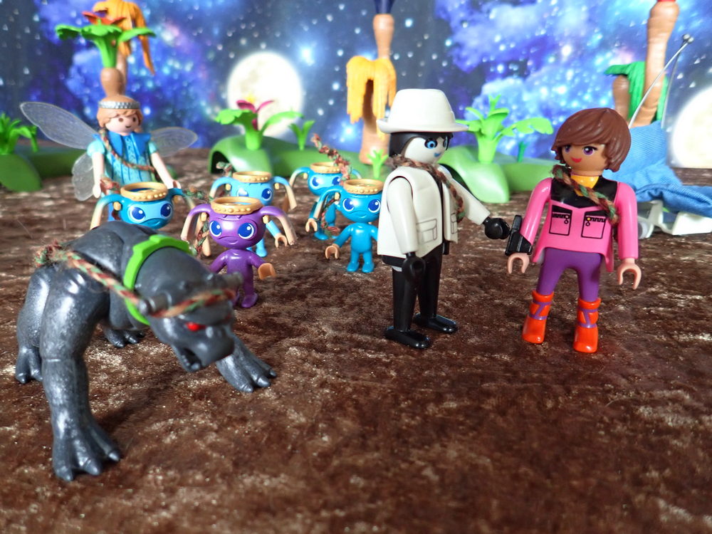 »Ich übersetze«, schlägt Lari Fari vor. »Also, die schnattern etwas