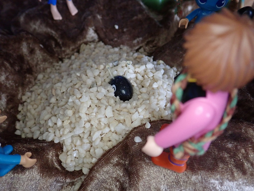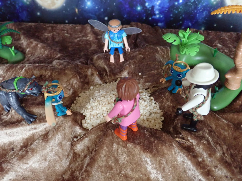 Ursid und Arkan gehen links um die Felsen. Ich mit den Kikis rechts