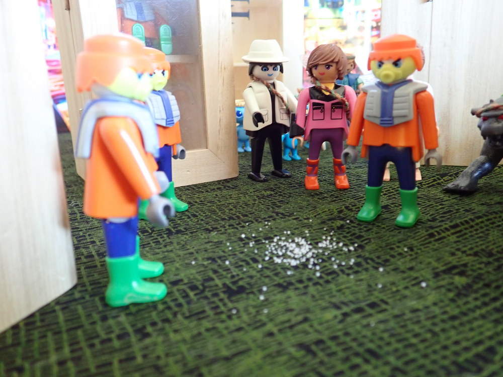Ich bücke mich und untersuche die weißen Krümel auf dem Boden.