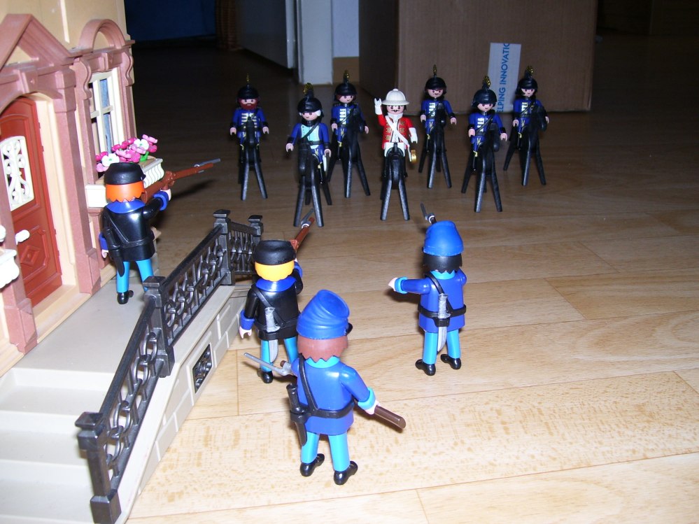 - RM: Ich störe ungern, aber ein Herr DQ steht an der Tür und bittet den Herrn Hauptmann sprechen zu dürfen: Binsi: Schicken sie ihn rein