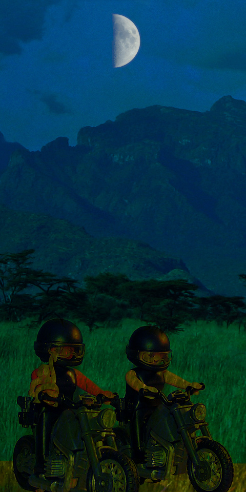Schnell verließen Masalanabo und Madeleine den Ort des Grauens und wenig später fuhren sie frisch gestärkt auf Feuerrädern in Richtung Zukunft durch die Nacht.