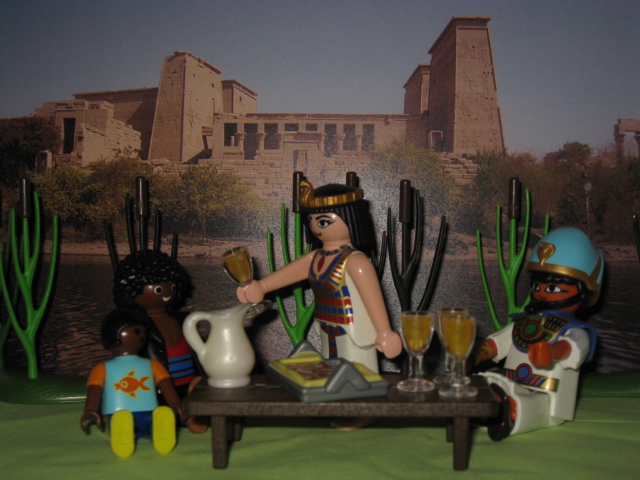 "Willkommen in Luxor, dem Tempel von Amun Ra am heiligen Fluß Nil! Und vor allem willkommen in meiner Sommerresidenz. Wir haben Freunde aus Frankreich zu Gast und werden es heute abend so richtig krachen lassen. Ihr könnt doch hoffentlich zum Essen bleiben?"