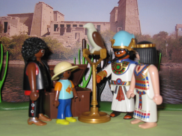 "Gerne, mein Nilpferdchen", übernimmt Karaokes, "Und schließlich ein Horus-Falke für den mutigen Kapitän der Millenium Faltbox. Mir scheint, dass ein Falke deinem Gefährt den letzten Schliff verleihen würde."