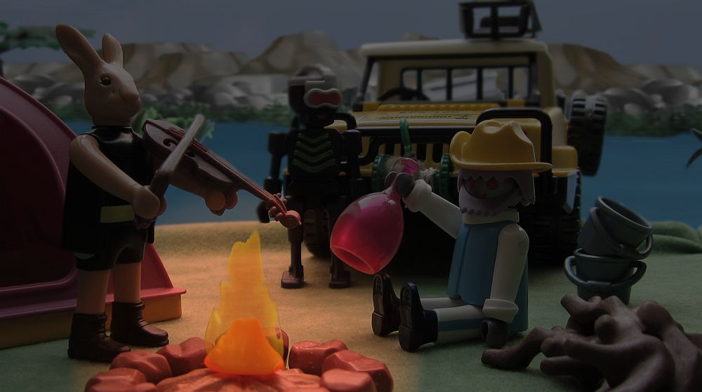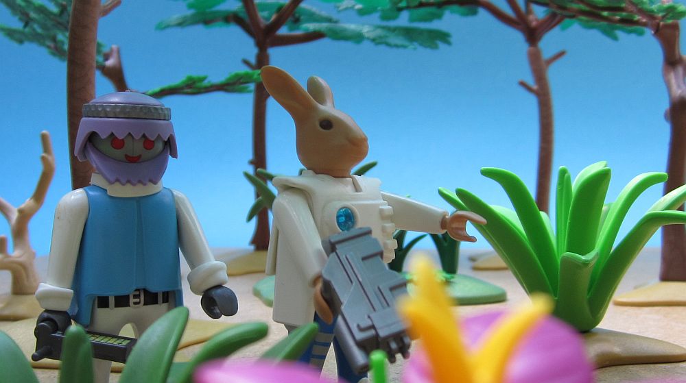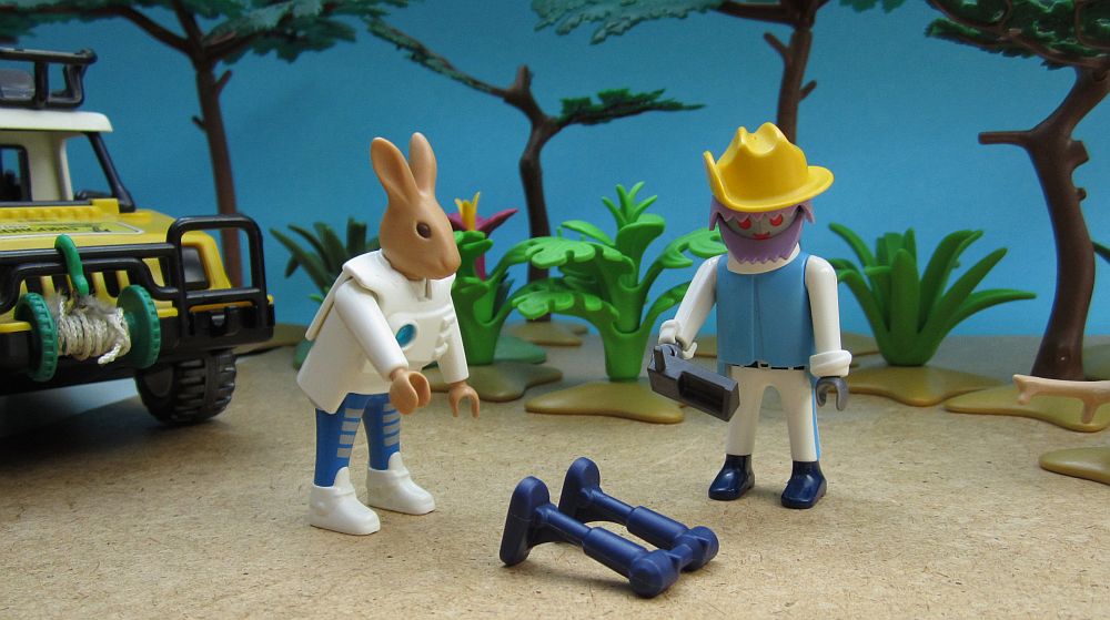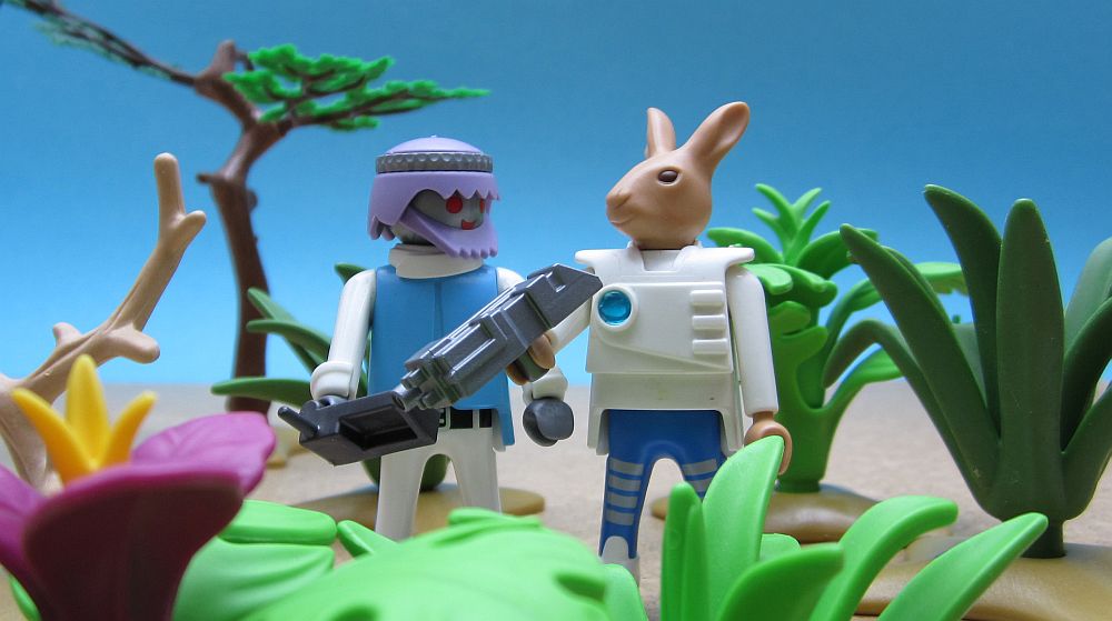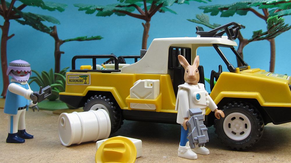 Die Doktoren setzten ihre Untersuchung fort. Zee fand schließlich einen alten verbeulten Hut und setzte ihn auf. „Wie ich sehe, beherrschen Sie es meisterhaft, sich den einheimischen Lebensformen anzupassen“, stichelte To Bie. Zee ignorierte auch diese Bemerkung seines Kollegen und freute sich vielmehr darüber, dass der Hut ein wenig Linderung gegenüber dem grellen Sonnenlicht brachte. Inzwischen stöberte Dr. To Bie durch die Fahrerkabine.