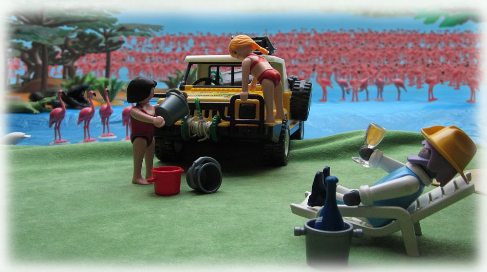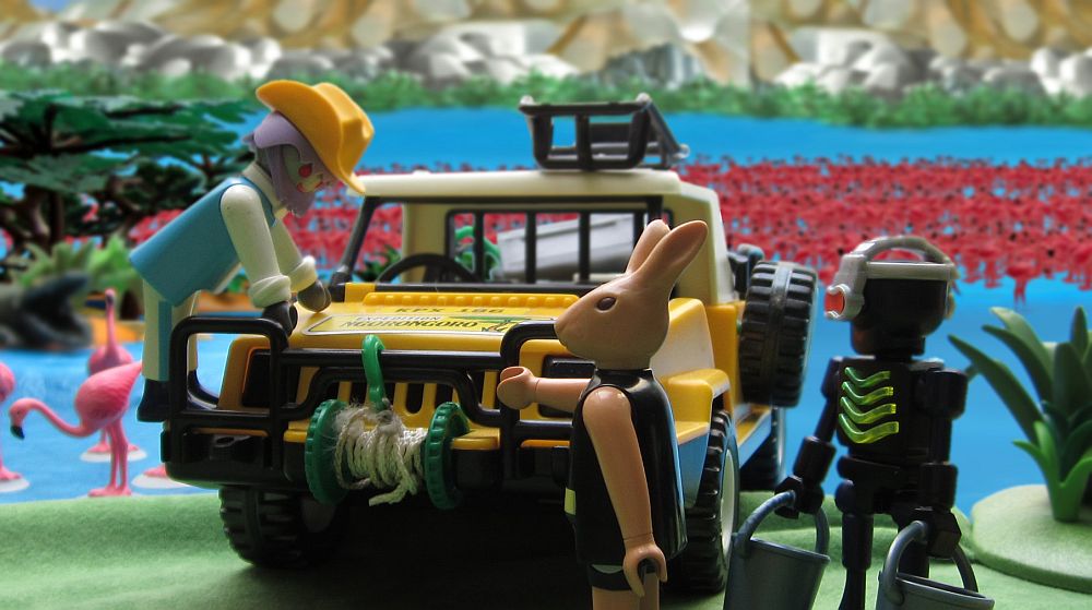 „Ich habe ein Kommunikationsmittel gefunden. Es verfügt über einen Permanentspeicher und erleichtert uns vielleicht die Orientierung.“ Bereits nach wenigen Augenblicken lieferte die Translatoreinheit ihrer Multifunktionsgeräte eine erste Übersetzung. „Wir befinden uns auf dem Planeten ‚Erde‘, ein ausgesprochen sinniger Name. Die Einheimischen verfügen dem Anschein nach nur über ein sehr begrenztes Maß an Fantasie.“ „Dem möchte ich widersprechen. Schauen Sie doch mal, wie viel Mühe sie sich gegeben haben, den ganzen Planeten in viele verschiedene Territorien mit ganz unterschiedlichen Namen und sogar Sprachen aufzuteilen.“ „Wir befinden uns also auf dem Kontinent Afrika in einem Land, das Uganda genannt wird.“ Er blickte erneut auf seinen Computer, dann zeigte er nach Osten, „… und nur wenige Centoklicks von hier startet eine Rallye quer durch diesen Kontinent. Ich denke, dies ist eine gute Möglichkeit, auf intelligentes einheimisches Leben zu stoßen. Dort wird uns sicherlich geholfen werden.“ Dr. Zee kratzte sich den Bart. „Wesen, die in irgendwelchen Fahrzeugen quer durch einen heißen Kontinent rasen? Ich glaube Ihre Defintion von „intelligentem Leben“ bedarf dringend einer Überholung.“ „Haben Sie einen besseren Vorschlag?“ „Nö.“