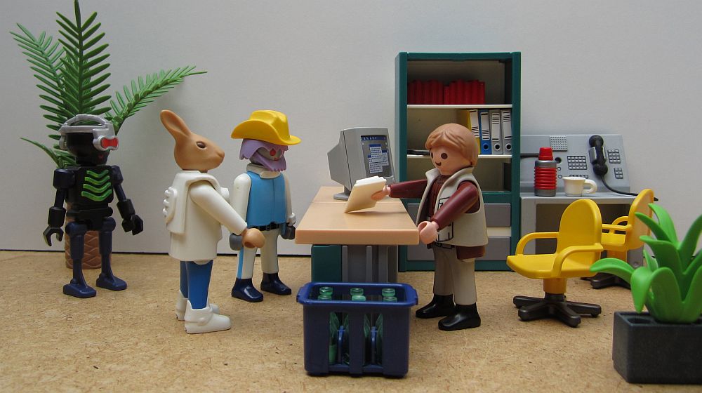 „Warum muss ich eigentlich immer die Schwerstarbeit übernehmen“, fluchte Dr. Zee, nachdem er das Fass zum Einfüllen hochgewuchtet hatte. „Weil ich im Gegensatz zu Ihnen andere Qualitäten besitze.“ Der Hase tippte sich an die Stirn. „Ich verfüge über ein Denkvermögen der 12. Ebene, Sie lediglich der neunten. Ich gebe jedoch neidlos zu, dass Ihr Bizeps dem meinigen überlegen ist.“ „Na immerhin etwas“, ächzte Zee unter dem schweren Fass.[/size]