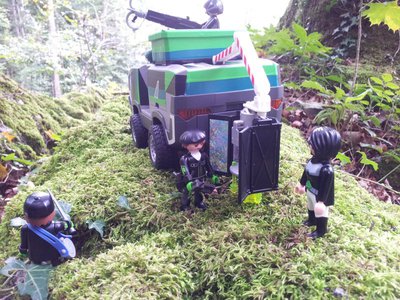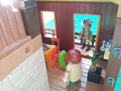 Das "Hauptquartier" des Teams ist eine kleine medizinische Versorgungs- und Ueberwachungsstation in einem fiktiven Dinosaurier-Park. Allerdings ist das Gebäude bloss von aussen "normal"... der Turm im Hintergrund führt in eine gut getarnte unterirdische Basis, von wo aus die Crew an der diesjährigen Klicky-Regatta teilnimmt.