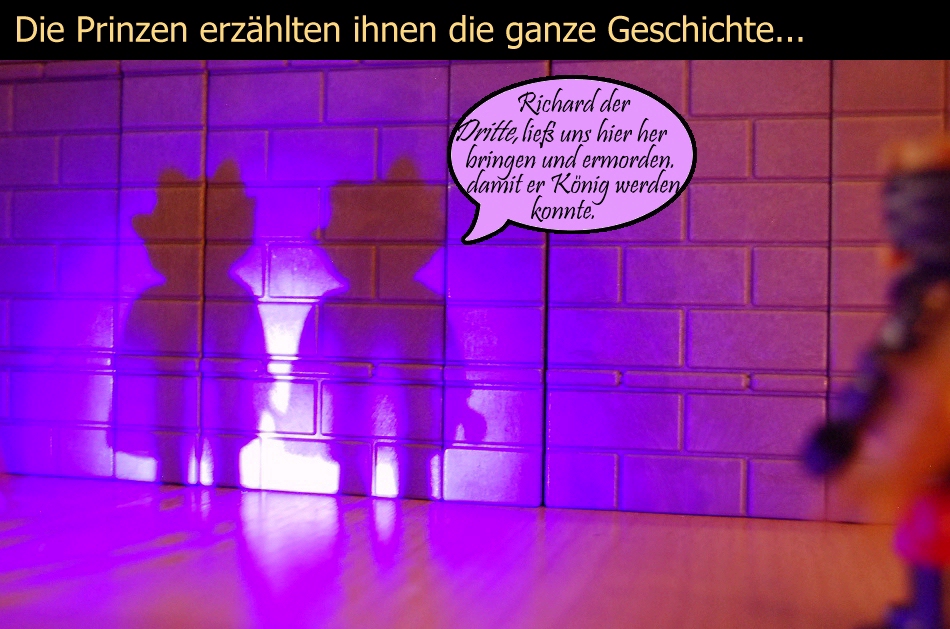 Klugsch.-Modus: In den 1930er Jahren hat man bei Erdarbeiten auf einem Feld in der Nähe des Schlosses die Leichen zweier Kinder gefunden; eines neun, das andere zwölf Jahre alt - das Alter der beiden Prinzen zum Zeitpunkt ihres Verschwindens.