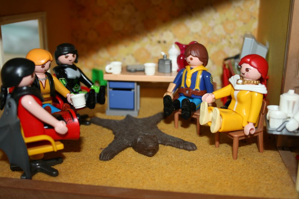 Ich(in passendem Retro-Look), mein Adjutant Johnny Blue, aufgrund der Völker-Verständigung ein englischer Austausch Offizier Mr. McDonald und zu guter Letzt meine zauberhafte -und unsterbliche- Begleitung Scátach die Schattenhafte, genannt Scatty