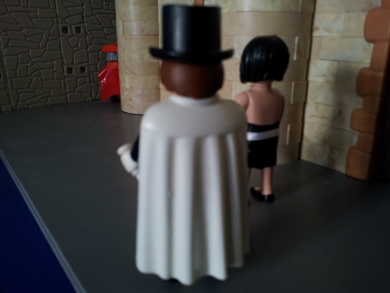 Bei einem Haus dreht sich die Gestalt plötzlich um, und...........