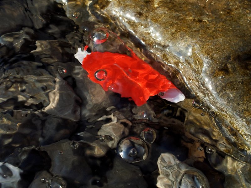 An einem Kanal erblicken wir tatsächlich eine kleine Gestalt in rotem Umhang.....