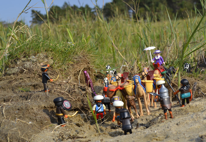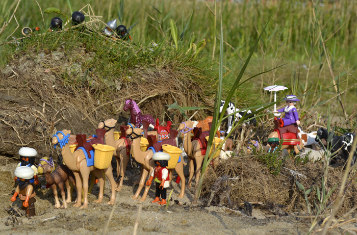 In der Karawane sind die Blauschöpfe ja gut getarnt. Jetzt sind nur Banditen zu fürchten, die die Handelsware wollen.