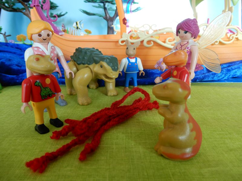 Mit viel Gelächter folgen die Dinos den Anweisungen.