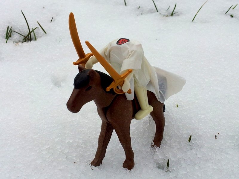 "Nun sind wir gerüstet. Die Zeitkugel läuft langsam auf an, und falls etwas passiert gehen wir als Franzosen durch und laufen nicht Gefahr, durch die Säbelrasselnde Hirn- ähh.... Haar-.... nein KOPF-lose Reiterin alles unterhalb des Halses zu verlieren."