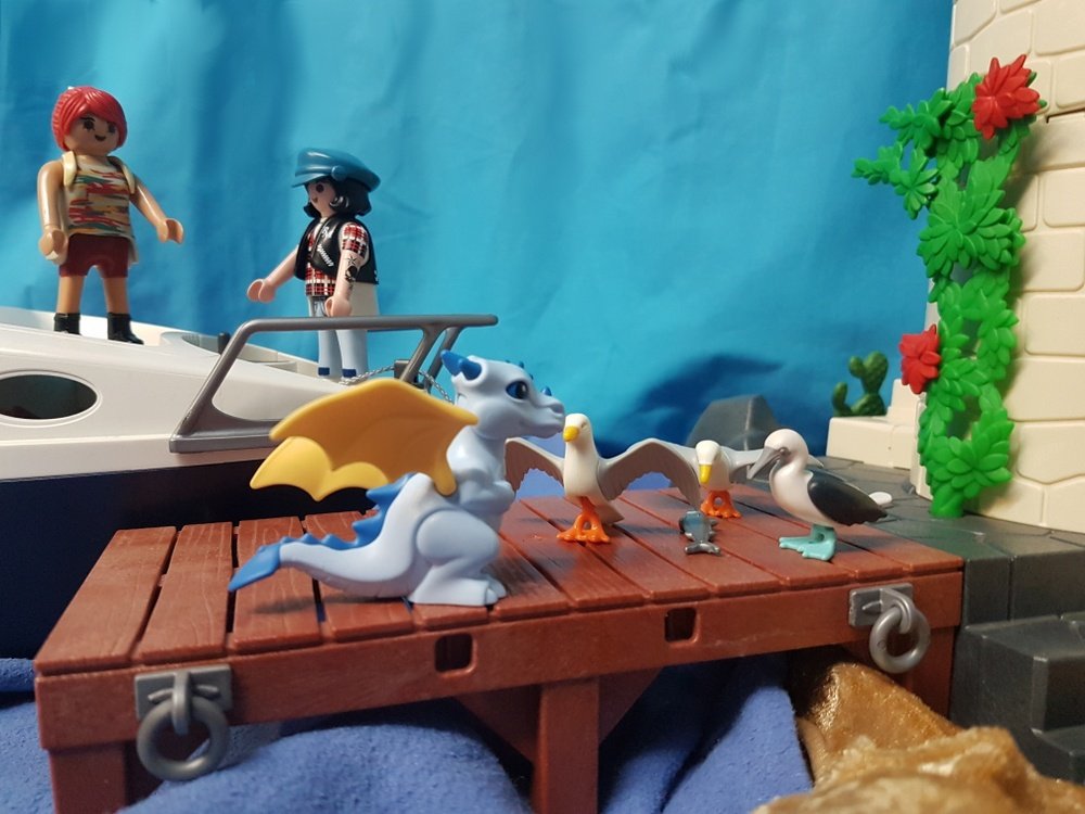 Tja, so geht's einem halt, wenn man in ein Naturschutzgebiet eindringt, in dem Menschen nix zu suchen haben. :pfeif :kicher Von verfressenen kleinen Drachen, die versuchen, den Herrschern der Insel ihre Beute zu klauen, ganz zu schweigen. :nana