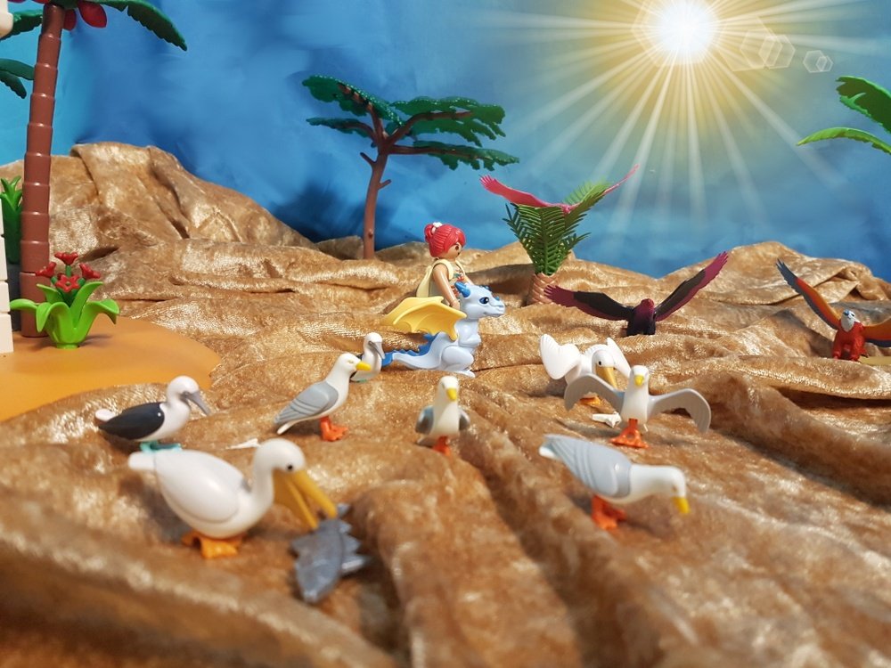 Nur mein hungriger Minidrache scheint die Herrschaft der Vögel nicht so recht zu akzeptieren. Als er einen seltsamen Riesenvogel beim Verspeisen einer dicken Flunder entdeckt, ist es mit seiner Zurückhaltung vorbei: