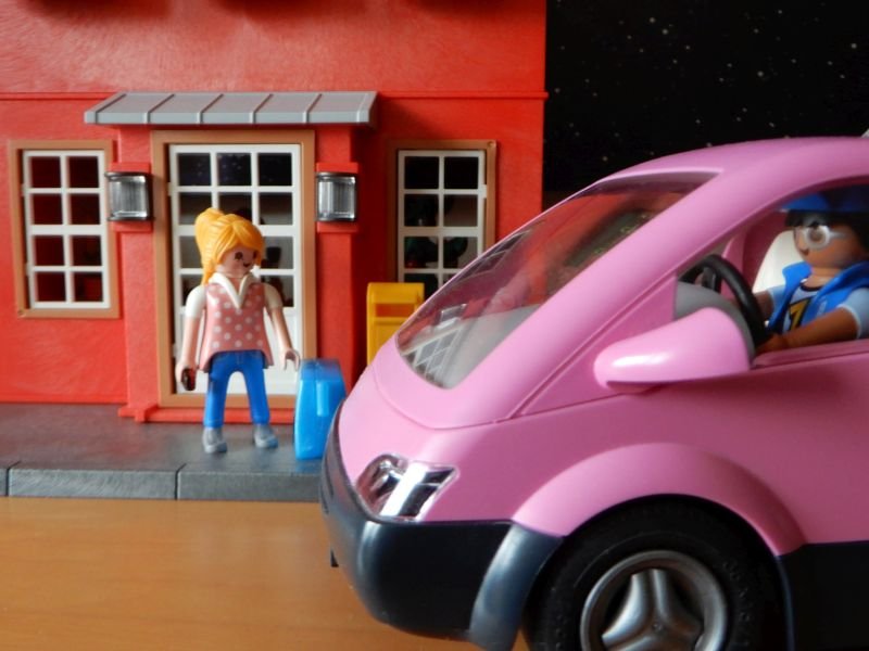 Ein rosa Van fährt vor. „Rosa? Ich hatte einen blauen Van in der Werkstatt!“ „Hallo Jolande! Ich bin Hans. Ich begleite dich auf deiner Reise.“