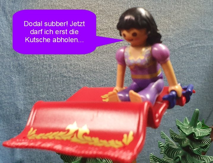 Daher die Frage an die Haremsdame mit der merkwürdigen Auswärtssprache: Wie ist denn die Maschendichte bei einem fliegenden Teppich?![]()