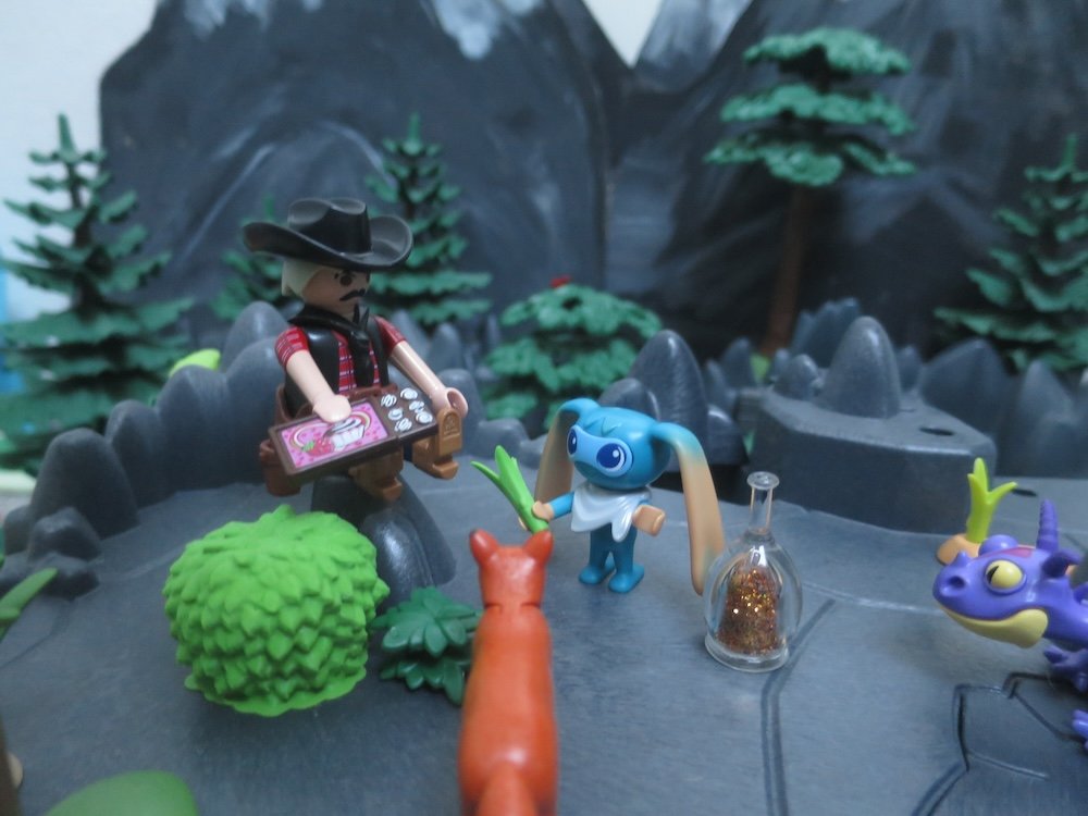Plötzlich flattert ein aufgeregter Annakolibri am Kai vor Kikis Nase. "Schnell".flüstert der dem kleinen Kerlchen zu, "ich habe eben Mimi mit so einem Sklett-Wesen am Hurricane Ridge gesehen. Wenn ihr euch beeilt, findet ihr sie ja vielleicht, eure hübche Freundin!"